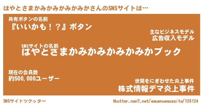 | 胡散臭い通販商品みたいなあだ名 | 『億万長者になれるブレスレット…その名も「はやとさまかみかみかみかみか」』 |