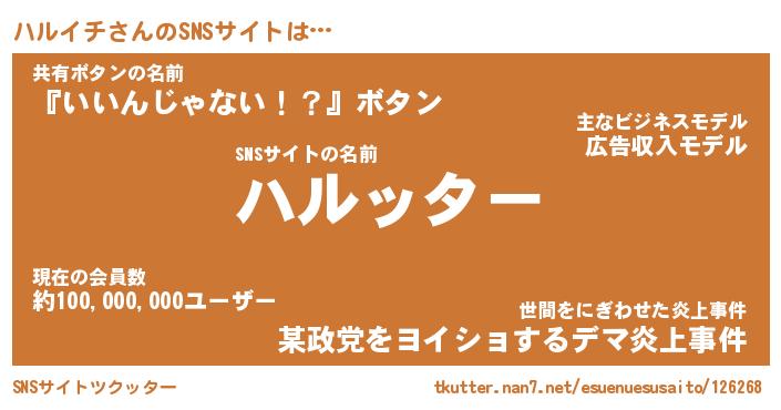 | 男性向けラノベタイトル風あだ名 | 『ハルイチアートオンライン』 |