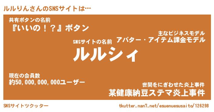 | ヘコむあだ名 | 『ルルもー』『レバニラ』『ルルっ子』 |