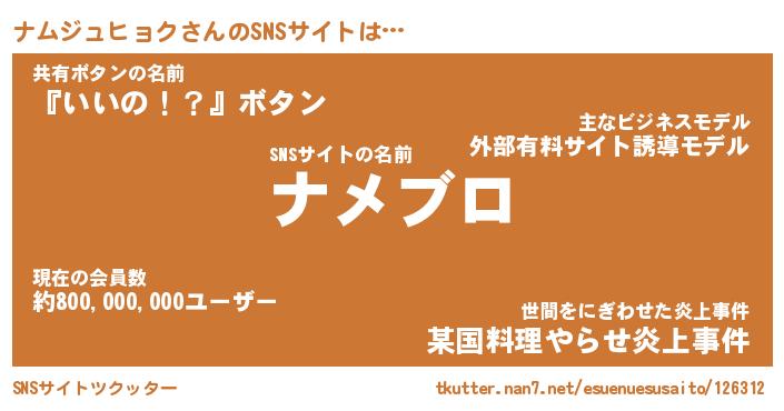 | 胡散臭い通販商品みたいなあだ名 | 『モテモテ間違いなし水晶球…その名も「ナムジュヒョク」』 |