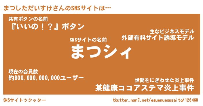 | 肩書あだ名 | 『まつしただいすけ御曹司』 |