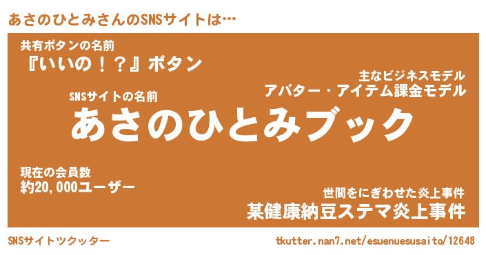 | 胡散臭い通販商品みたいなあだ名 | 『億万長者になれるブレスレット…その名も「あさのひとみ」』 |