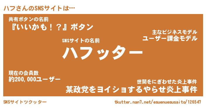 | 肩書あだ名 | 『ハフ店長』『ハフ大統領』 |