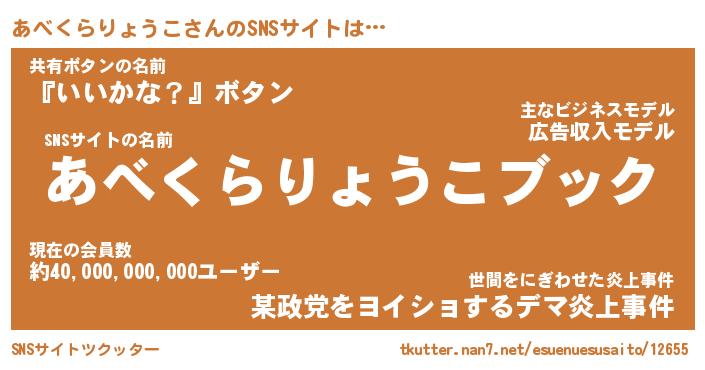 | 意味不明あだ名 | 『ペロリンあべくらりょうこ』 |