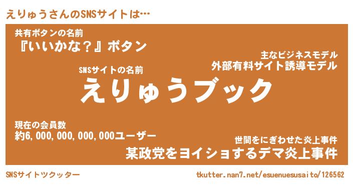 | 意味不明あだ名 | 『ペロリンえりゅう』『永久保存えりゅう』 |