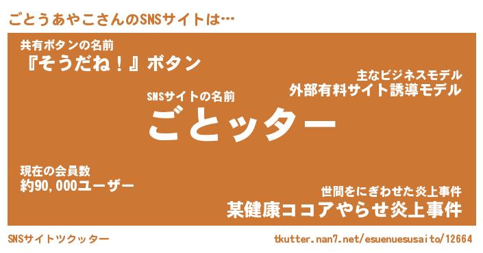 | ヘコむあだ名 | 『ごともー』『牛乳』『ごとっ子』 |