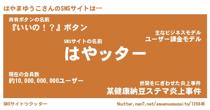 | 肩書あだ名 | 『はやまゆうこ御曹司』 |
