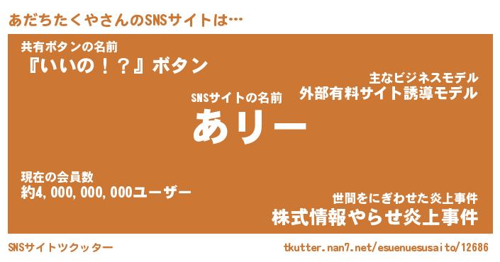 | 男性向けラノベタイトル風あだ名 | 『あだちたくやの憂鬱』 |