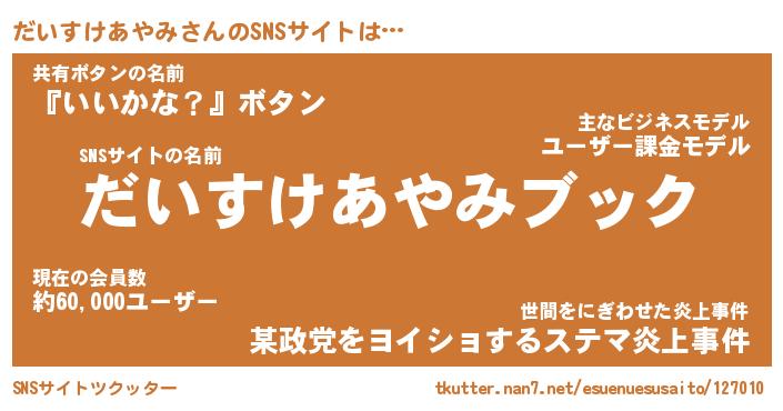 | 胡散臭い通販商品みたいなあだ名 | 『億万長者になれる霊験あらたかなお札…その名も「だいすけあやみ」』 |