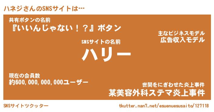 | ヘコむあだ名 | 『ハネふぇ~』『レバニラ』『ハネお』 |