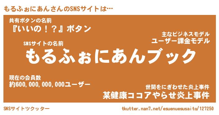 | ヘコむあだ名 | 『もるっふぃ~』『酢こんぶ』 |