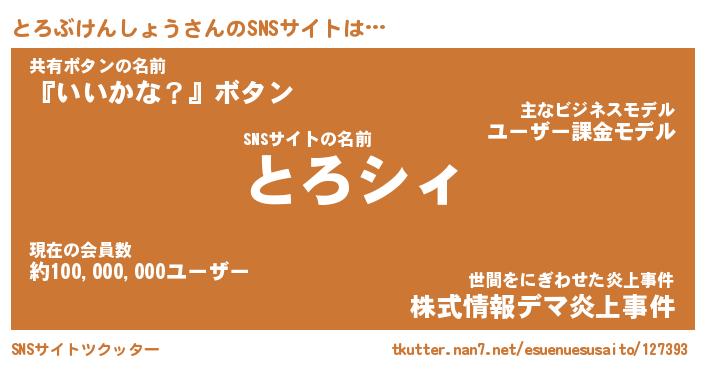 | 男性向けラノベタイトル風あだ名 | 『とろぶけんしょうの憂鬱』 |