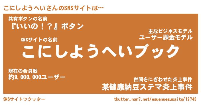 | 胡散臭い通販商品みたいなあだ名 | 『億万長者になれるブレスレット…その名も「こにしようへい」』 |