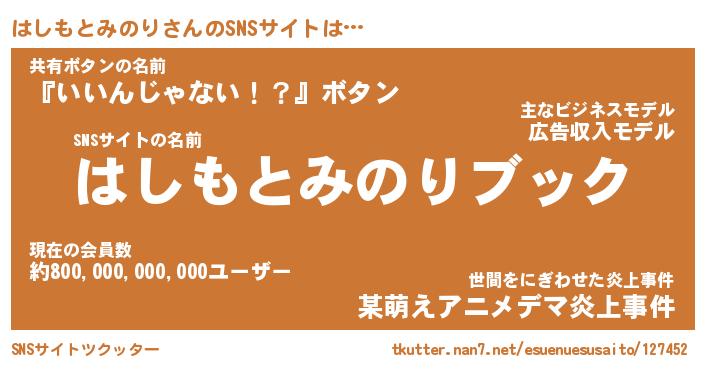 | 胡散臭い通販商品みたいなあだ名 | 『億万長者になれるブレスレット…その名も「はしもとみのり」』 |