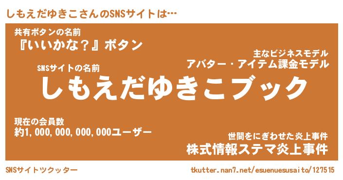 | 肩書あだ名 | 『しもえだゆきこ御曹司』 |