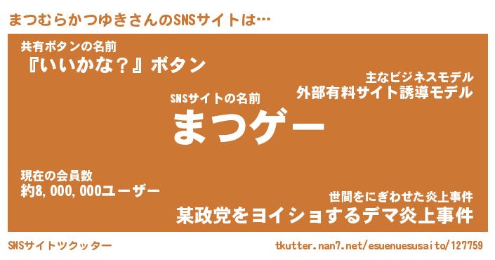 | 肩書あだ名 | 『まつむらかつゆき社長』 |