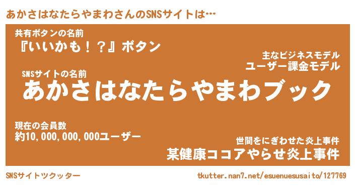 | 男性向けラノベタイトル風あだ名 | 『アカサハナタラヤマワアートオンライン』 |