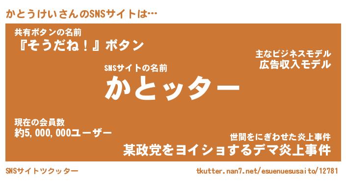 | 肩書あだ名 | 『かとうけい店長』『かとうけい総理大臣』 |
