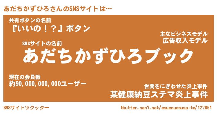 | ヒーロー風カッコイイあだ名 | 『スーパーアダチカズヒロ』 |