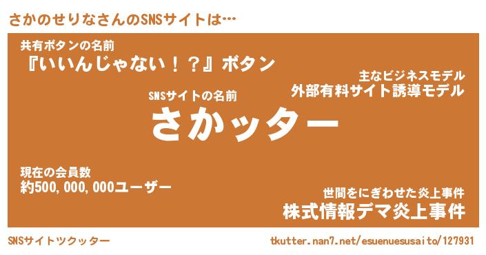 | 胡散臭い通販商品みたいなあだ名 | 『億万長者になれる霊験あらたかなお札…その名も「さかのせりな」』 |