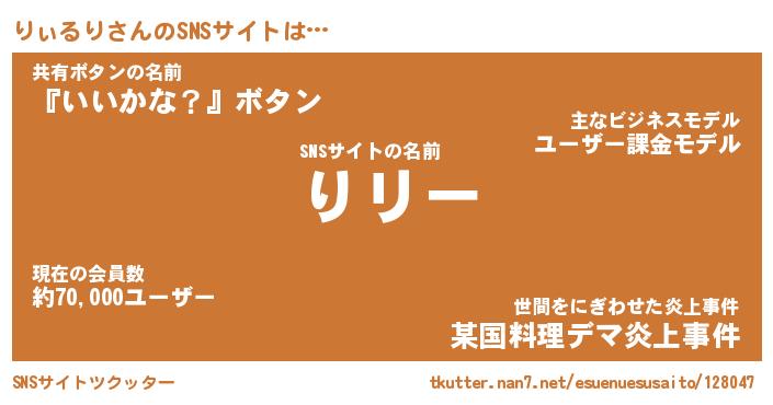 | 肩書あだ名 | 『りぃるり店長』『りぃるり大統領』 |