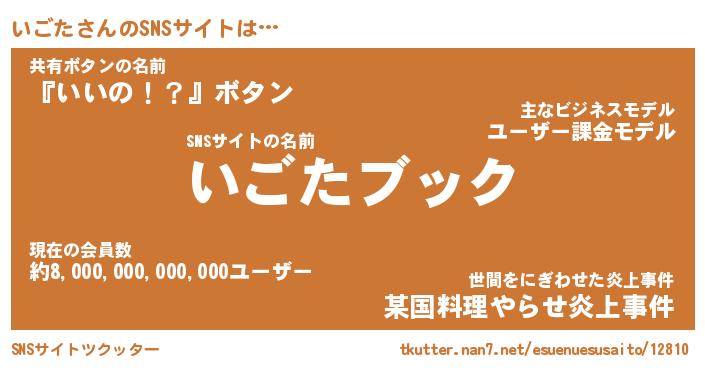 | 男性向けラノベタイトル風あだ名 | 『イゴタアートオンライン』 |