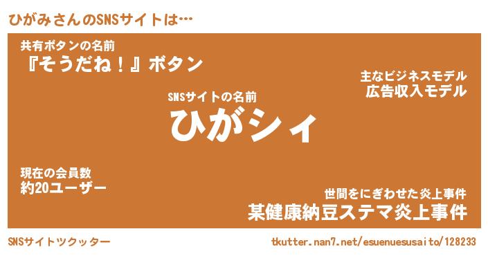 | ポケモン風あだ名 | 『ヒガチュウ』『ヒガミダネ』 |