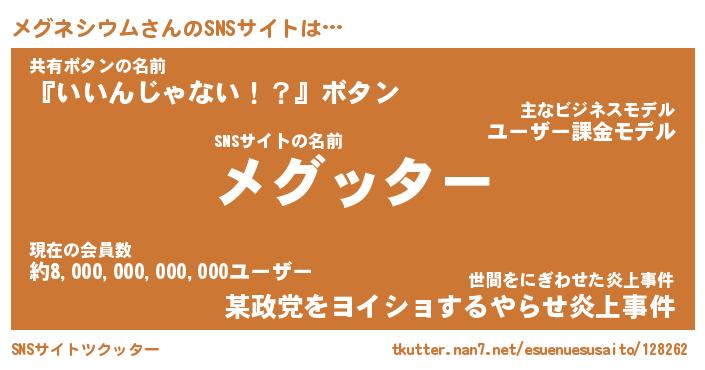 | 胡散臭い通販商品みたいなあだ名 | 『億万長者になれる霊験あらたかなお札…その名も「メグネシウム」』 |