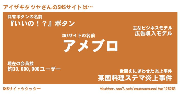 | 肩書あだ名 | 『アイザキタツヤ店長』 |