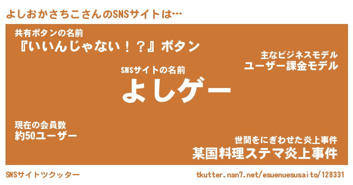 | 伝説のあだ名 | 『伝説のスナイパーよしおかさちこ』 |