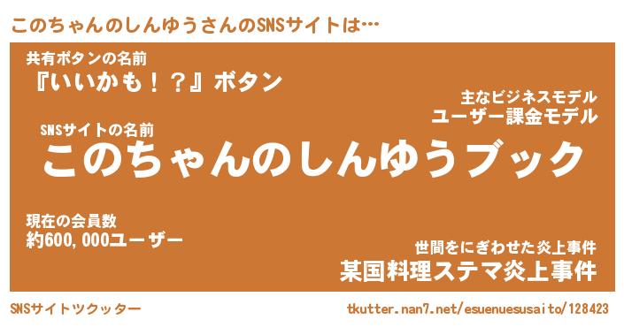| 伝説のあだ名 | 『封印されしスナイパーこのちゃんのしんゆう』 |