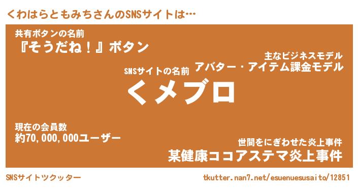 | 男性向けラノベタイトル風あだ名 | 『クワハラトモミチアートオンライン』 |