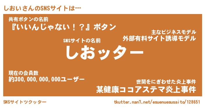 | 胡散臭い通販商品みたいなあだ名 | 『億万長者になれる水晶球…その名も「しおい」』 |