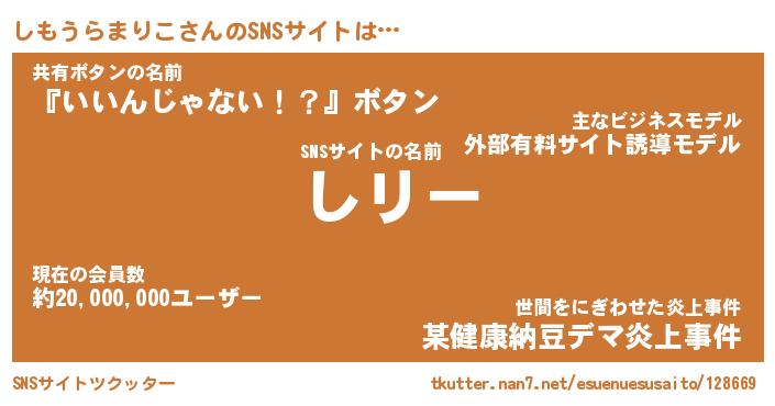 | 意味不明あだ名 | 『ペロリンしもうらまりこ』 |