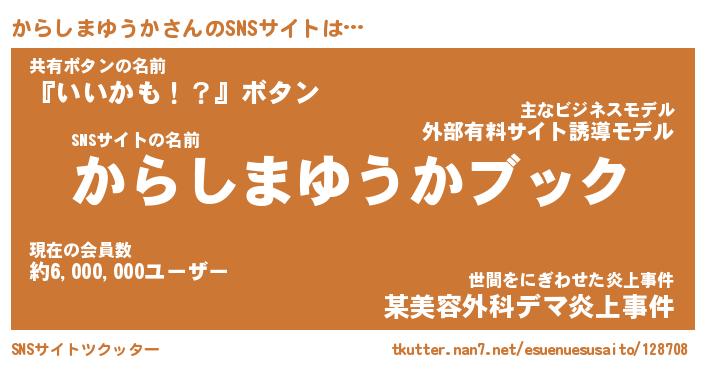 | 胡散臭い通販商品みたいなあだ名 | 『億万長者になれるブレスレット…その名も「からしまゆうか」』 |
