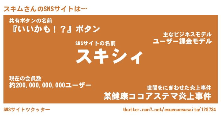 | 男性向けラノベタイトル風あだ名 | 『スキムの憂鬱』 |