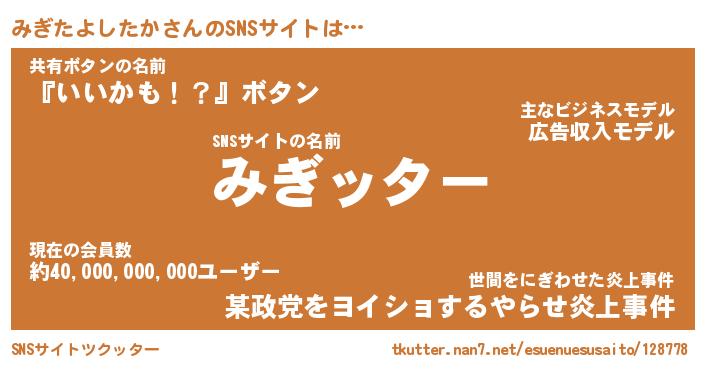 | 胡散臭い通販商品みたいなあだ名 | 『億万長者になれる水晶球…その名も「みぎたよしたか」』 |