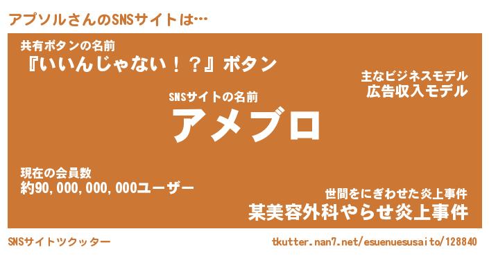 | ヘコむあだ名 | 『アプにー』『牛乳』『アプ太郎』 |