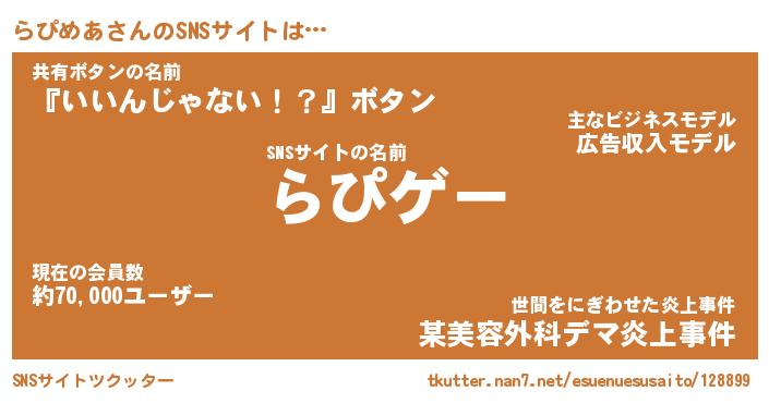 | ヘコむあだ名 | 『らぴにゅー』『牛乳』『らぴっちょ』 |