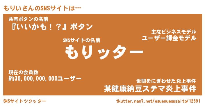 | 胡散臭い通販商品みたいなあだ名 | 『億万長者になれる水晶球…その名も「もりい」』 |