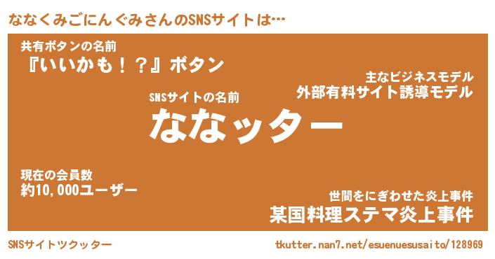 | 自動車の名前っぽいあだ名 | 『ナナティマ』『ナスラー』『ナント』 |
