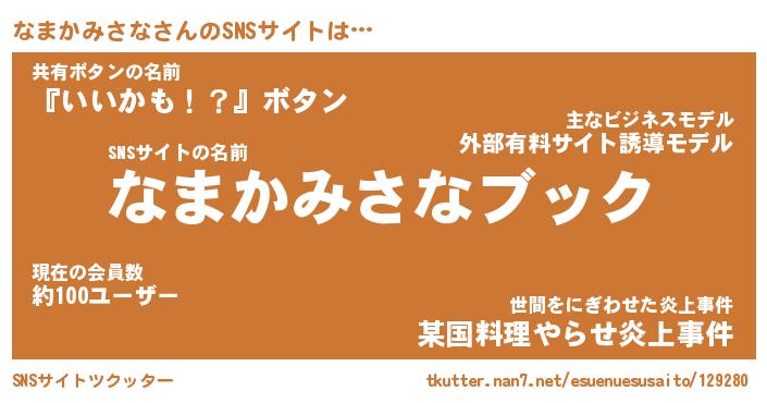 | 肩書あだ名 | 『なまかみさな店長』『なまかみさな塾長』 |