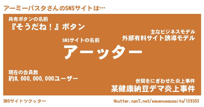 | 胡散臭い通販商品みたいなあだ名 | 『億万長者になれる水晶球…その名も「アーミーパスタ」』 |