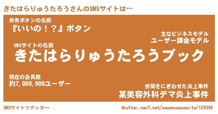 | 胡散臭い通販商品みたいなあだ名 | 『億万長者になれるブレスレット…その名も「きたはらりゅうたろう」』 |