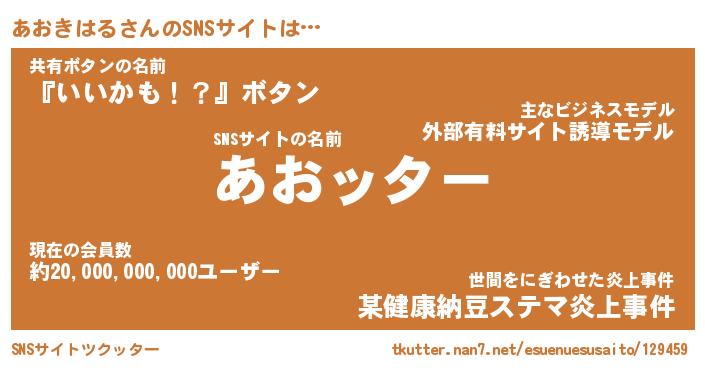 | 胡散臭い通販商品みたいなあだ名 | 『億万長者になれる水晶球…その名も「あおきはる」』 |