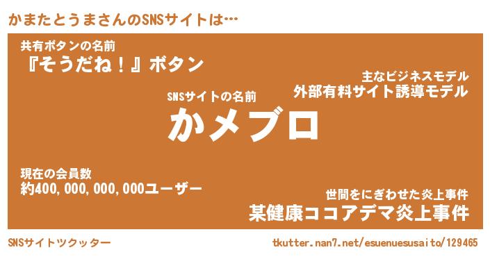 | 肩書あだ名 | 『かまたとうま御曹司』 |