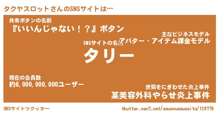 | 男性向けラノベタイトル風あだ名 | 『タクヤスロットの憂鬱』 |