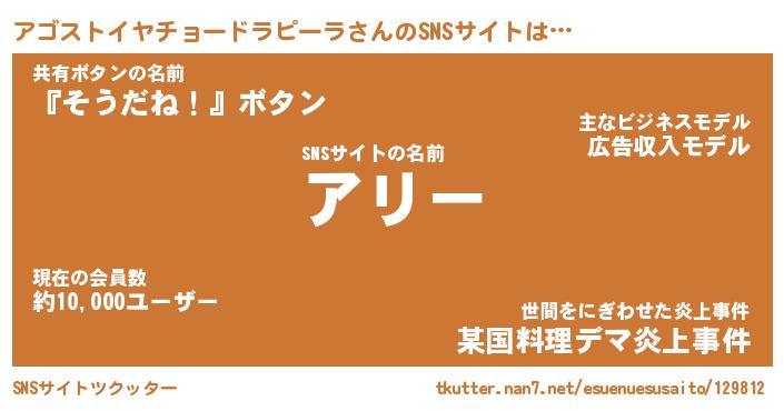 | 肩書あだ名 | 『アゴストイヤチョードラピーラ社長』 |