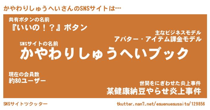 | 肩書あだ名 | 『かやわりしゅうへいCEO』 |
