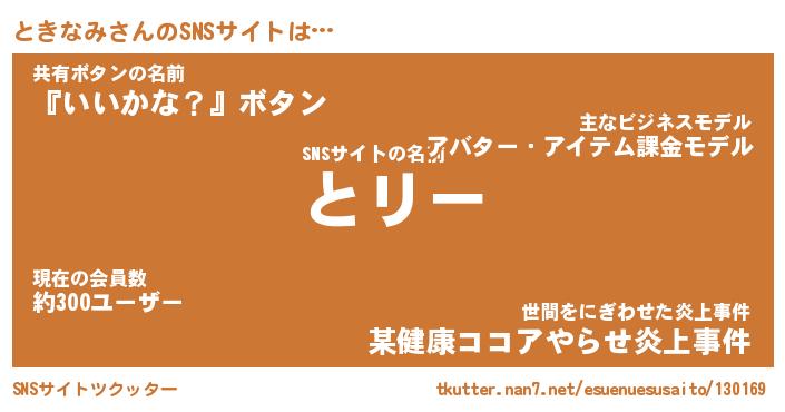 | ヘコむあだ名 | 『ときもー』『なまこ酢』『ときっ子』 |
